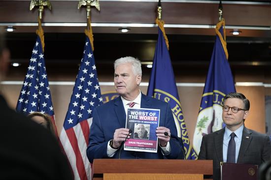 Today, Majority Whip Tom Emmer (R-Minn.) joined House Republican leadership to slam Democrats for their eagerness to shut down vital government services to protect illegal aliens. Whip Emmer also blasted his colleagues across the aisle for their opposition to the SAVE America Act, which would mandate proof of citizenship and photo ID to vote in federal elections. ![]() Click here to watch Whip Emmer’s remarks. Whip Emmer: “Pedophiles. Rapists. Murderers. And drug traffickers. These are just a few of the criminal illegal aliens that the brave men and women of Immigration and Customs Enforcement have taken off the streets of Minneapolis in the recent months and weeks. These violent criminals—many of them imported into our country during the Biden administration—have no right to be here. Nor do they have the right to wreak havoc on our communities, leech off our welfare programs, or vote in our elections. This is common sense. Common sense to everyone except our colleagues across the aisle. Instead of protecting the American people and restoring the integrity of our electoral system, Democrats have decided to put their stake in the ground for the exact opposite. Their current list of so-called ‘demands’ for DHS funding is comparable to mass amnesty for criminal illegals. I’ll put it plainly: Democrats want to stop immigration enforcement almost entirely. They’re even willing to shut down vital government functions like TSA, the Coast Guard, and FEMA to do so. But Republicans will not waver in our support for our brave federal law enforcement officers, and we will not tie their hands as they enforce our nation’s laws. Republicans also will not waver in our pursuit of restoring integrity to our elections. That’s why we’re voting this week on the SAVE America Act. Mandating photo ID and proof of citizenship to vote in federal elections isn’t just common sense, it is widely popular. Yet, Democrats are fighting tooth and nail to oppose it. Chuck Schumer even recklessly equated the bill to Jim Crow. No matter which way they spin it, the Democrats' opposition to this bill is suspect at best. Despite fervent Democrat opposition, House Republicans are going to restore integrity to American elections and we’re going to ensure the enforcement of our nation’s immigration laws. The future of this country depends on it.” |