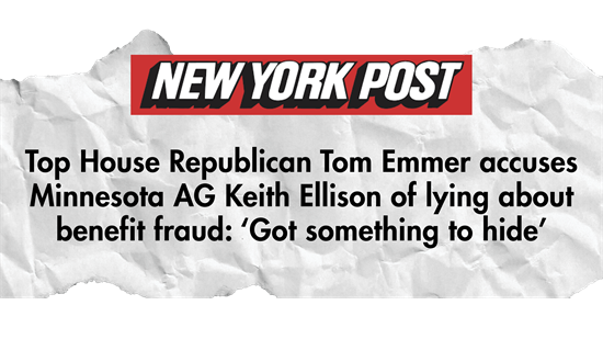 House Majority Whip Tom Emmer (R-Minn.) sat down for interviews with Fox News, the New York Post, and the Daily Caller, following Minnesota Governor Tim Walz and Attorney General Keith Ellison’s appearance before the House Oversight Committee examining the rampant fraud in Minnesota. In the interviews, Whip Emmer takes aim at the shady timeline of events surrounding Keith Ellison’s meeting with Somali fraudsters in 2021 and emphasizes that this is just the beginning of the Trump administration’s War on Fraud.